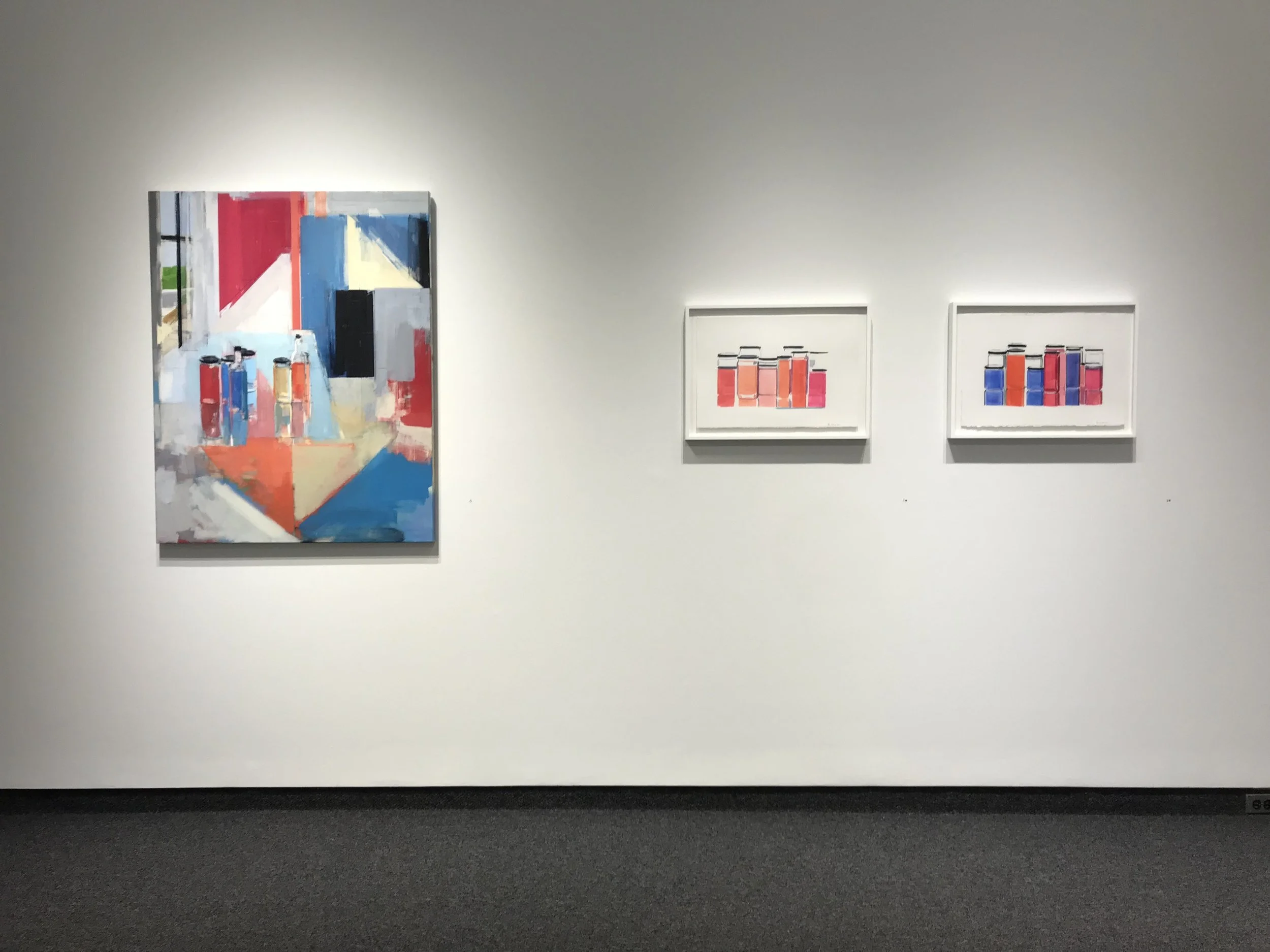 Boston Globe correspondent, Cate McQuaid, writes of her work, "She maps her works onto a grid, so at first glance they appear flat, gestural, and purely abstract. But look again: It's a studio space [...] Each gesture, each block of color is a playing card in the house of cards that is this space. One shift, and the scene threatens to collapse delightfully into abstraction."